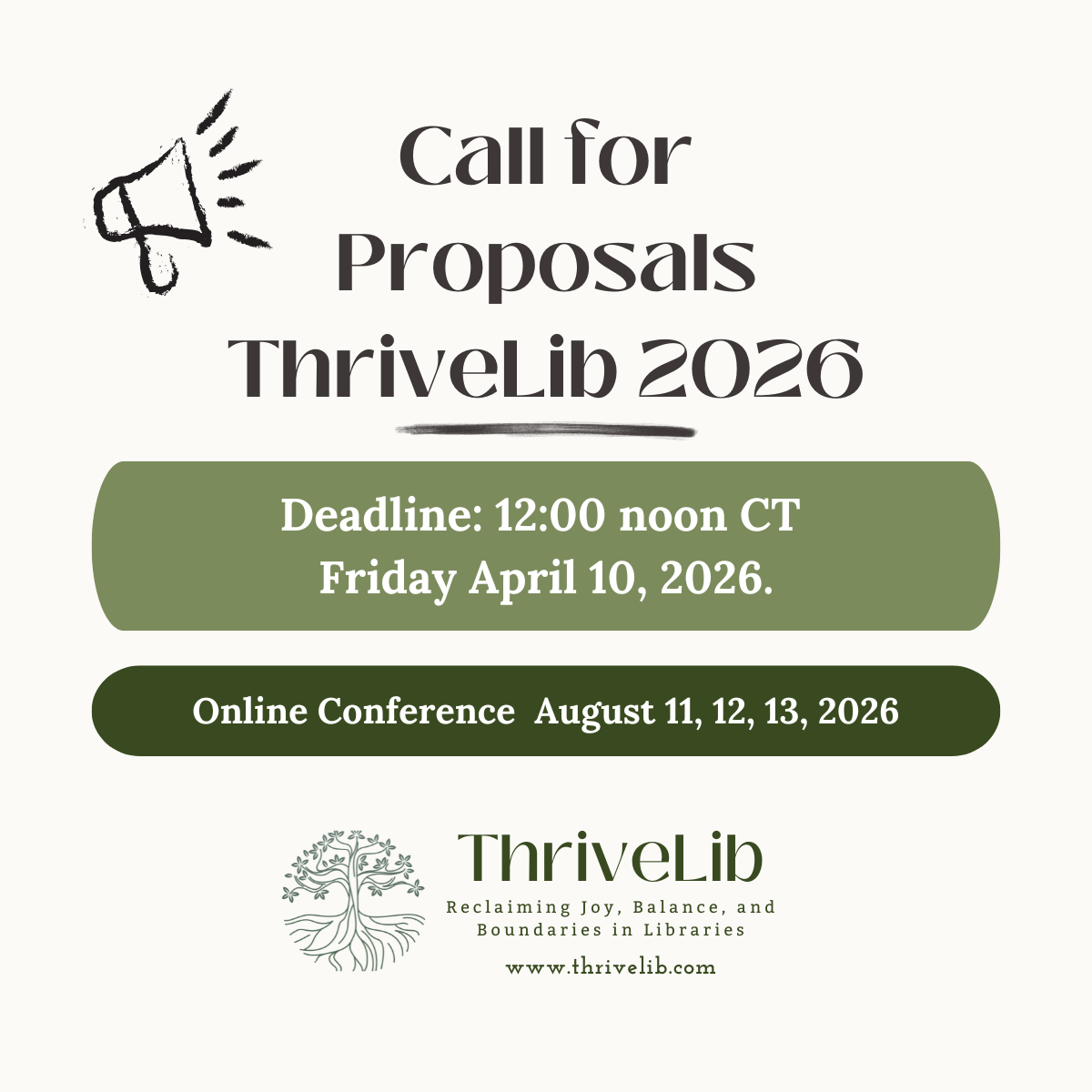 ThriveLib: Reclaiming Joy, Balance, and Boundaries in Libraries is a virtual conference created for librarians, library managers, and library workers who are ready to reimagine what well-being looks like in their professional lives. Library workers are experiencing rising rates of burnout, moral injury, and disconnection. ThriveLib was born out of the need for space, support, and strategies that prioritize the well-being of those who sustain our libraries every day.